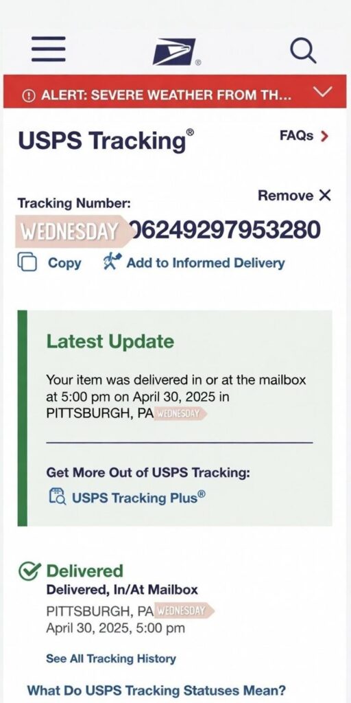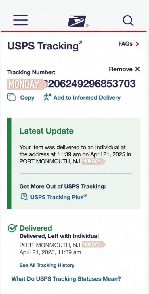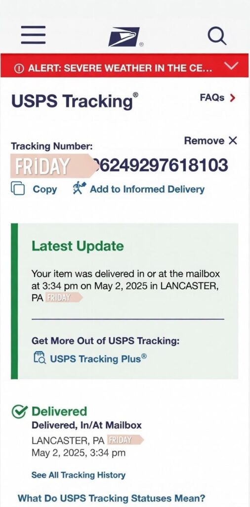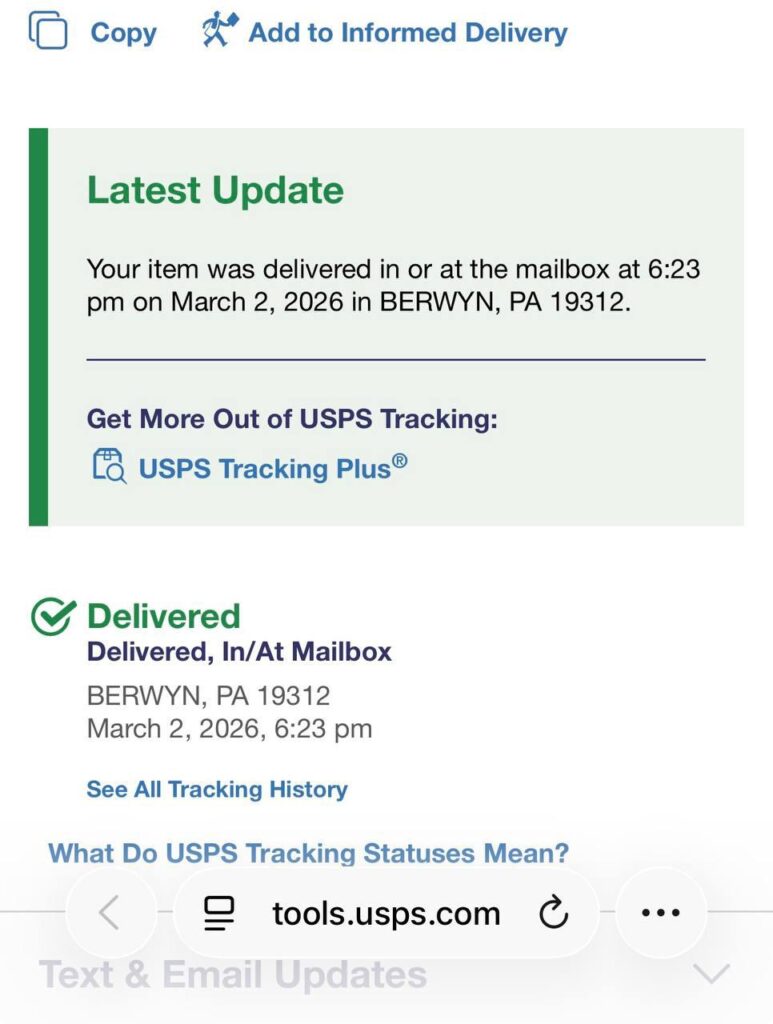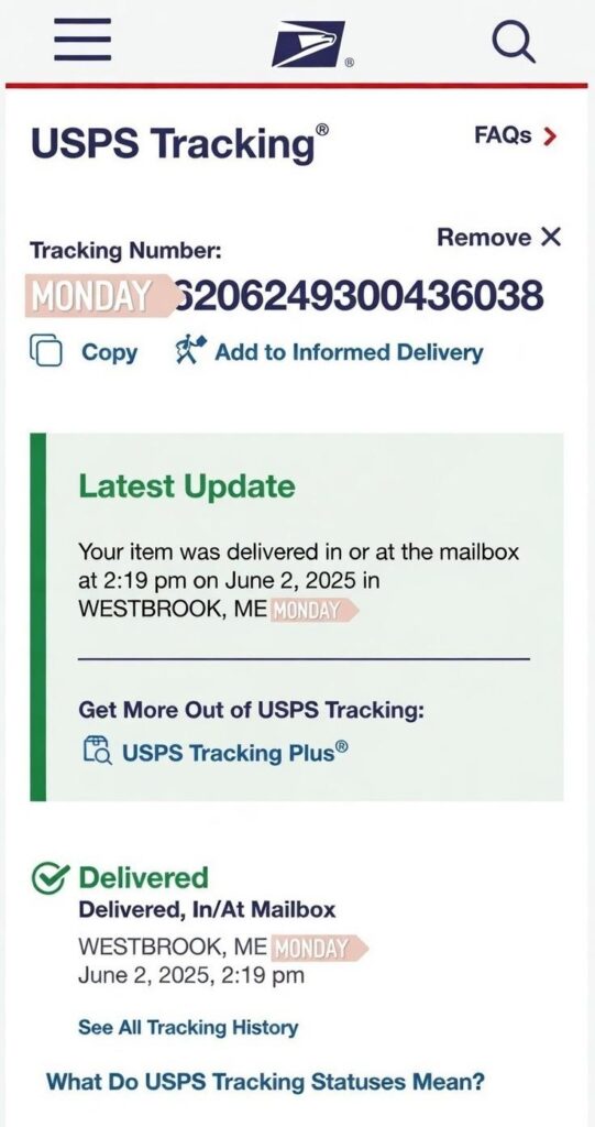 But USPS handled it fast with zero delays.