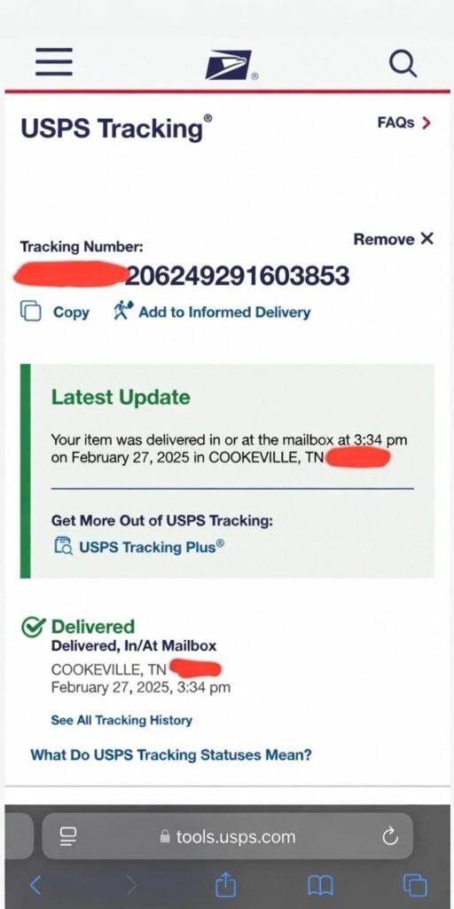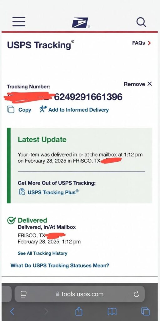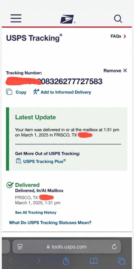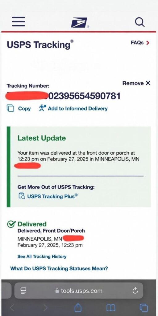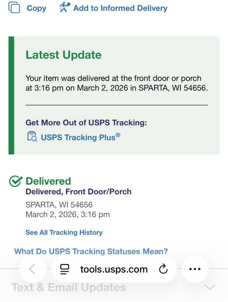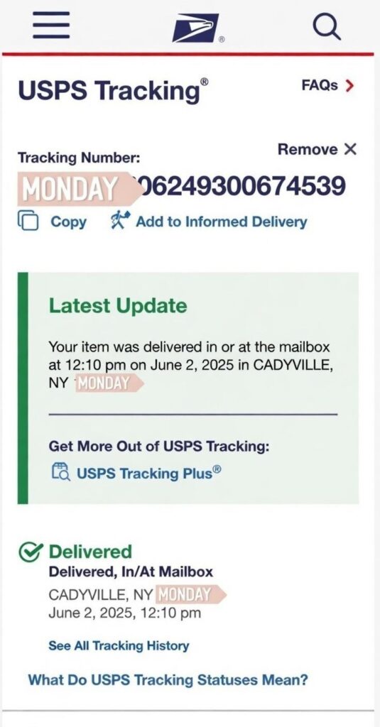 But USPS handled it fast with zero delays.